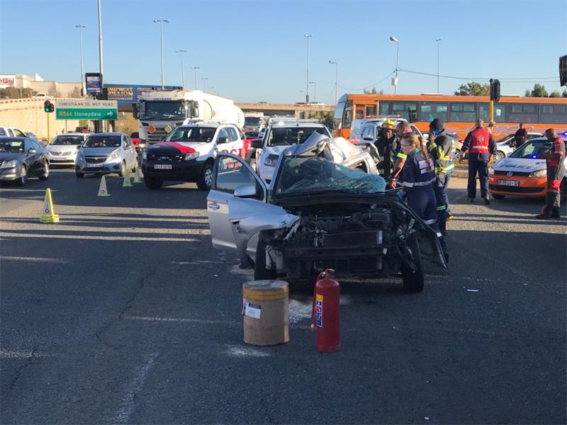 Meiring said ER24 paramedics, along with other services, arrived on the scene at 7am to find the one vehicle in the left-hand lane of the busy road. The other two vehicles had come to a stop just a short distance away.