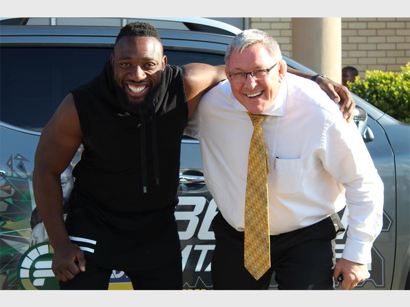 He is not only a rugby player, he is also the company’s brand ambassador, and, in light of this, Wahl Bartmann, former Springbok flanker and Chief Executive Officer of Fidelity Security Services, decided to gift him with his own branded vehicle.