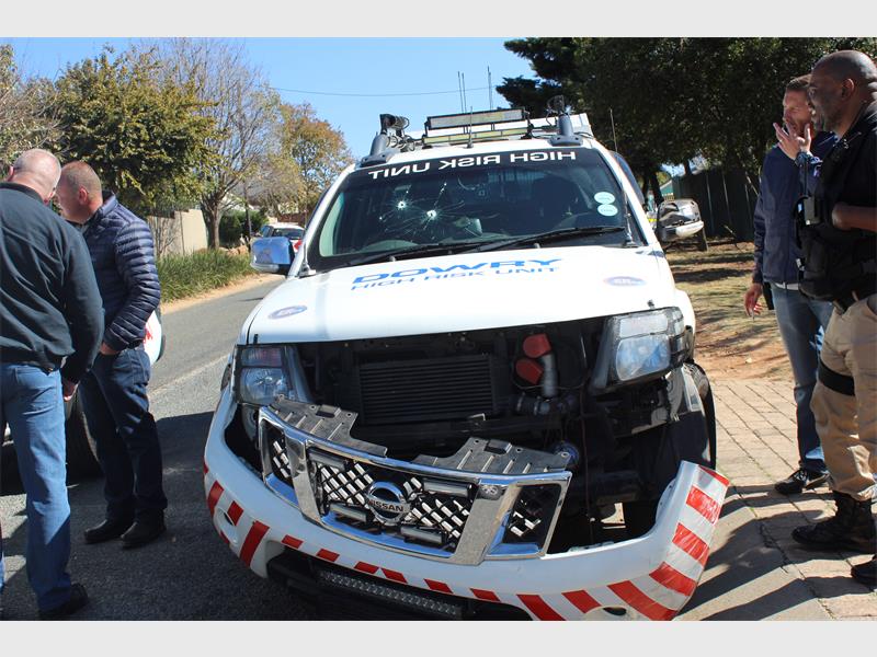 A Dowry tactical manager whose vehicle was shot at and bumped by the perpetrators during their escape, felt uneasy when he drove past a property on Naboom Road. The gate was wide open with a vehicle with flashing lights on the driveway. “I was doing a patrol in Wilro Park, driving along Naboom Road. I drove past the property and saw the gate open and a gold-coloured Ford Figo reverse-parked in the driveway with its lights on.