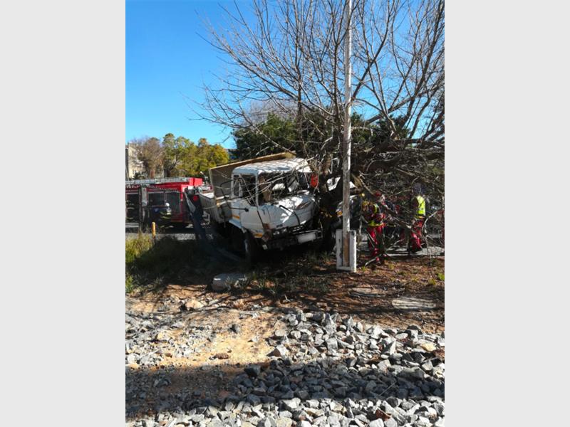 ER24 paramedics, along with the City of Johannesburg’s Emergency Management Services (EMS), arrived on the scene at 12.10pm and found the wrecked truck against a large tree.