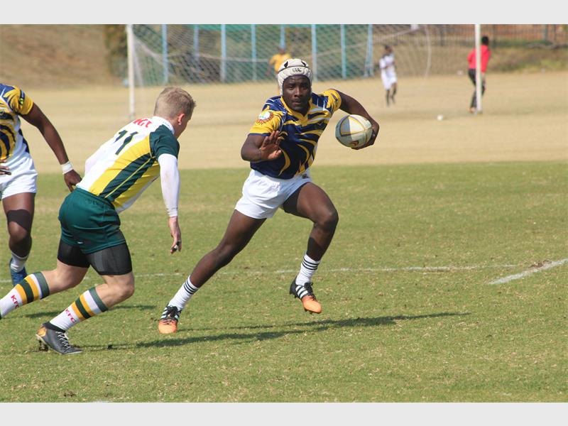 David Omoluwa makes one of many successful line breaks against Hoërskool Warmbad. Photo: Blake Linder.