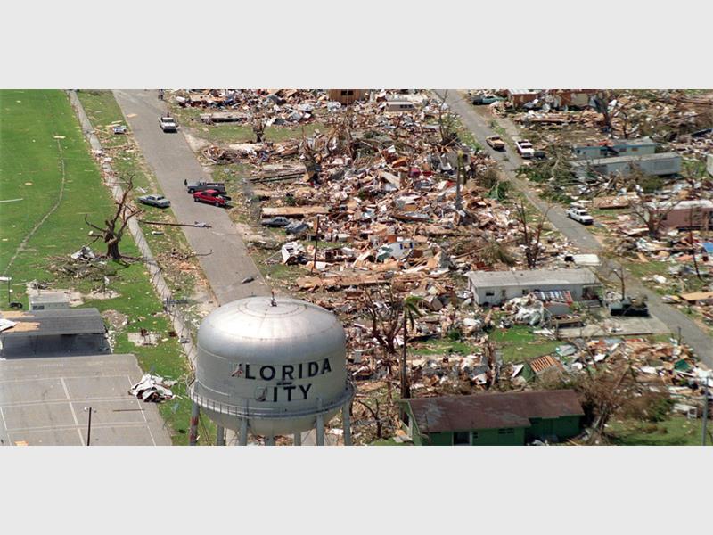 The extremely powerful Hurricane Andrew even carried a freighter nearly a kilometre over the Elliott Key in Florida.
