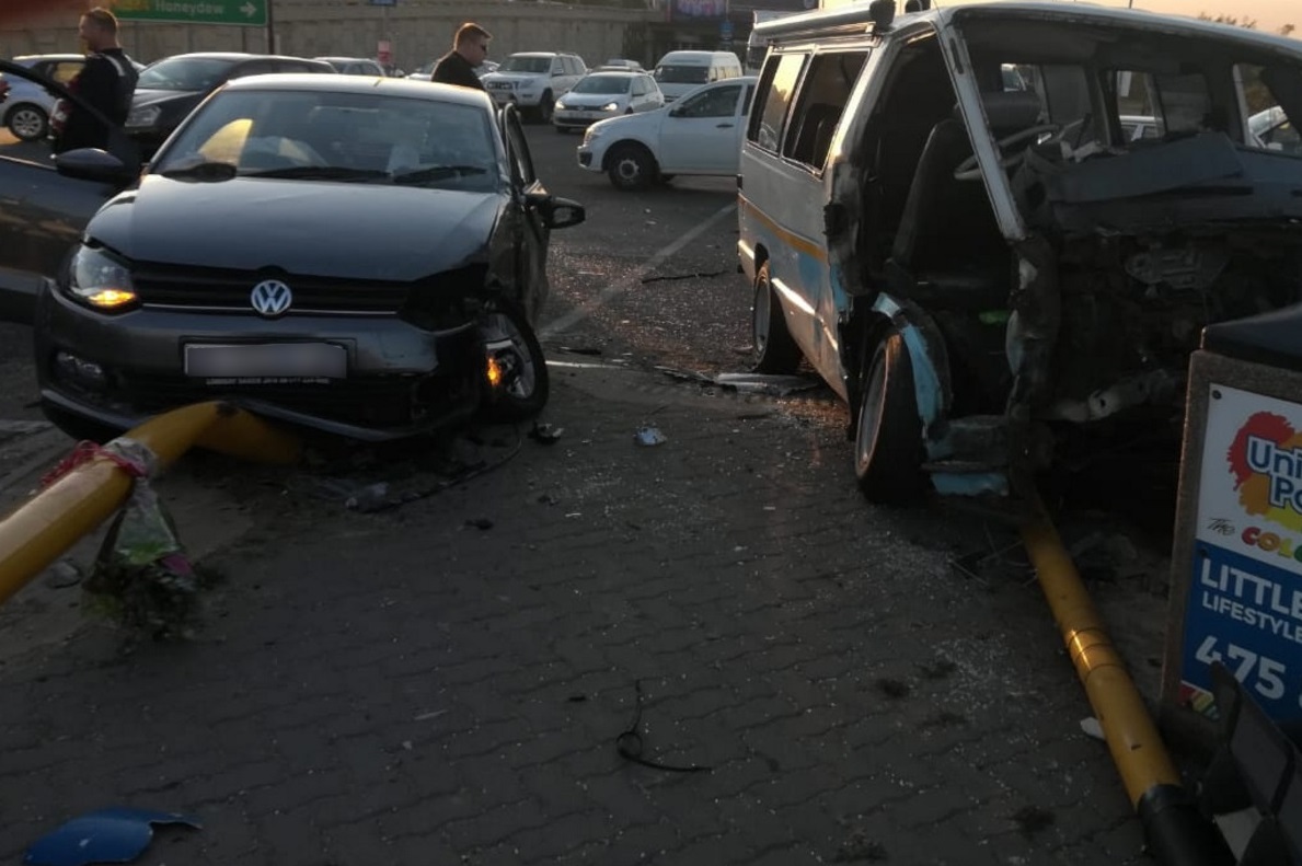“The light motor vehicle had come to a stop against the traffic light while the taxi had come to a stop against a refuse bin,” said Meiring.