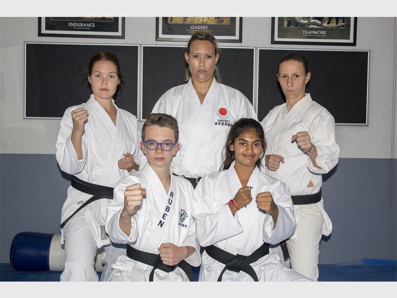 Sensei Wendy Wannenburg congratulated Nadine Parker (4th Dan), Izél van Blerk (2nd Dan), Tiya Naidoo (1st Dan) and Ruben Vorster (1st Dan) on passing their grading, and said, “I am exceptionally proud of each one of them. Nadine, who successfully graded for her 4th Dan, needs a special mention, as it is quite a difficult grading that she has managed to complete with success.”
