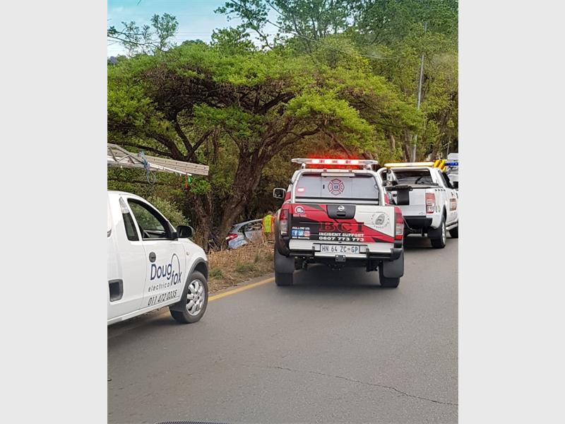 Yet another vehicle has careened off Christiaan de Wet Road, much like two others during the past weekend.