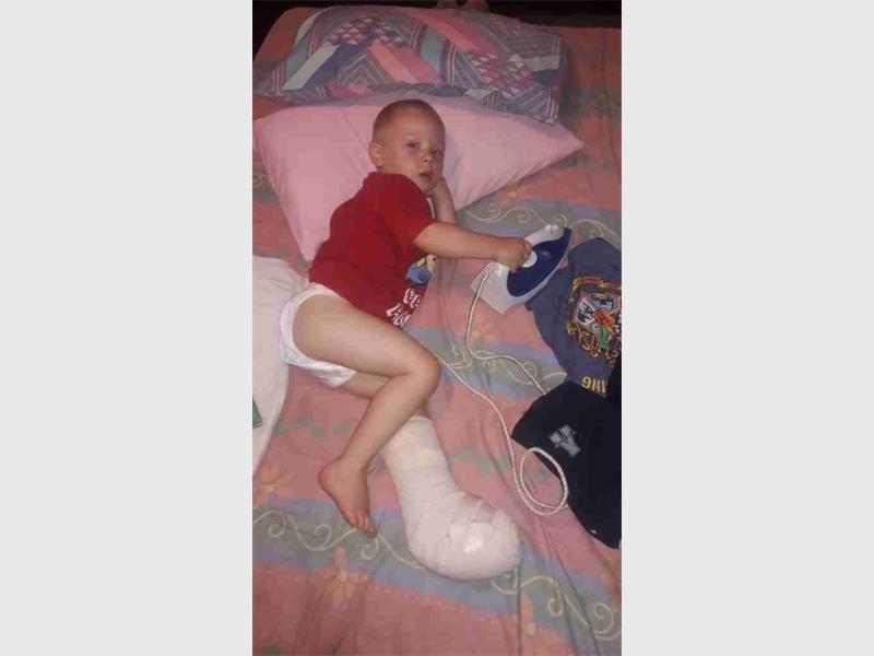 Die tweejarige Nathan Ungerer is nou nóg ‘n stappie nader daaraan om sy eerste paar skoene aan te trek.