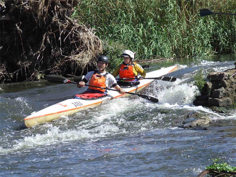 They finished the training race in three hours 13 minutes, completing a distance on the river of some 32km, with a couple of sections where participants had to take their boats out of the water and run (or walk) while carrying it for a few kilometres as part of their training. They also came second in the mixed doubles category.