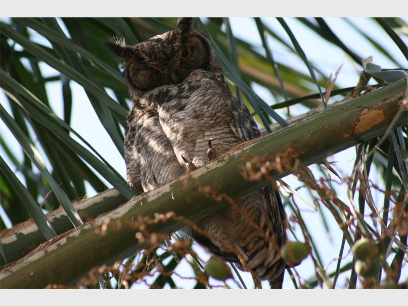 For the last two-or-so weeks Pappa has been making the rounds in a host of complexes in Radiokop, constantly travelling from tree-to-tree, from complex-to-complex. Brendan Murray and his group of rescuers from the Owl Rescue Centre along with resident Amanda van Rensburg have been following Pappa wherever he’s gone, trying to capture him to treat his right eye which is still puffy.