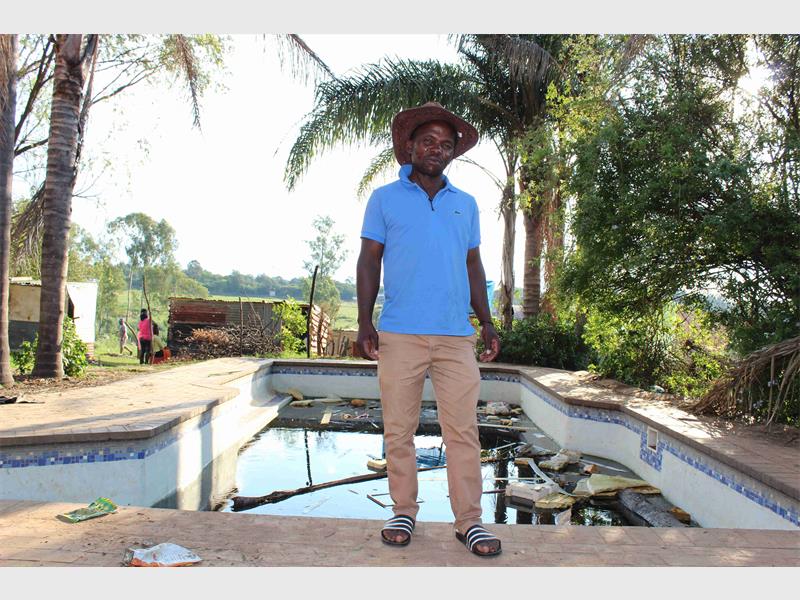 The pool is next to the two-bedroom house in which five people live. The house was one of the existing structures on the property on Sunset Drive when the informal settlers were relocated from Plot 55 in Muldersdrift in December.