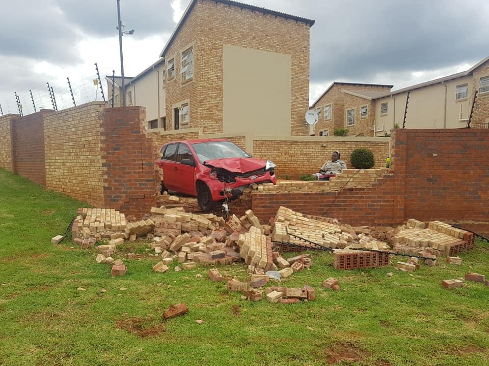A light motor vehicle has plunged into a complex boundary wall in Wilgeheuwel this afternoon, Wednesday, 13 February.