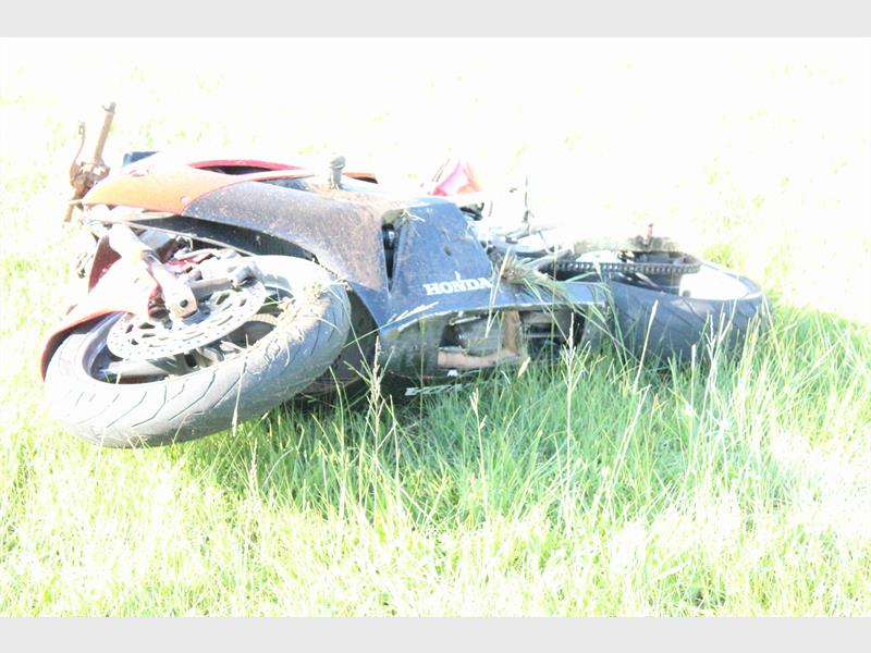 According to officials on the scene, the accident happened at about 7am. Apparently, the driver of an Uno was travelling along Lotz Street in Mindalore, heading to Main Reef Road. The driver failed to stop at the stop sign, and did not see the motorcycle heading his way.