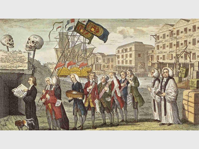 With the passing of the Stamp Act, the colonists’ grumbling finally became an articulated response to what they saw as the mother country’s attempt to undermine their economic strength and independence. They raised the issue of taxation without representation, and formed societies throughout the colonies to rally against the British government and nobles who sought to exploit the colonies as a source of revenue and raw materials.