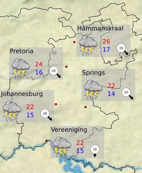 The South African Weather Service has issued a severe thunderstorm warning for parts of Gauteng, today, 2 April. According to the weather service, thunderstorms are expected from 2pm until 6pm.