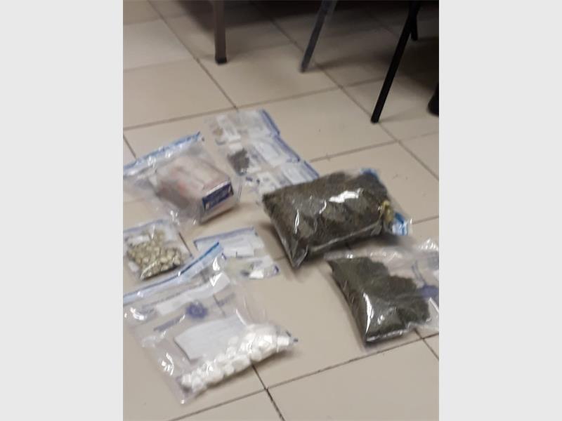 A number of drugs were seized, including CAT, heroin, and dagga, plus about 60 syringes. Together, these items have an estimated street value of about R193 000.