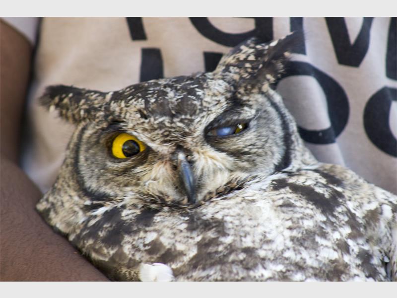 This beautiful spotted owl doesn’t have a name, as the owner of the farmland just outside of Muldersdrift believes that they are not to be kept as pets. She had simply put up the five owl boxes on her property so that the owls could have a safe place to live. The spotted owl is also referred to as a ‘she’, but there really is no way to tell if it’s male or female.