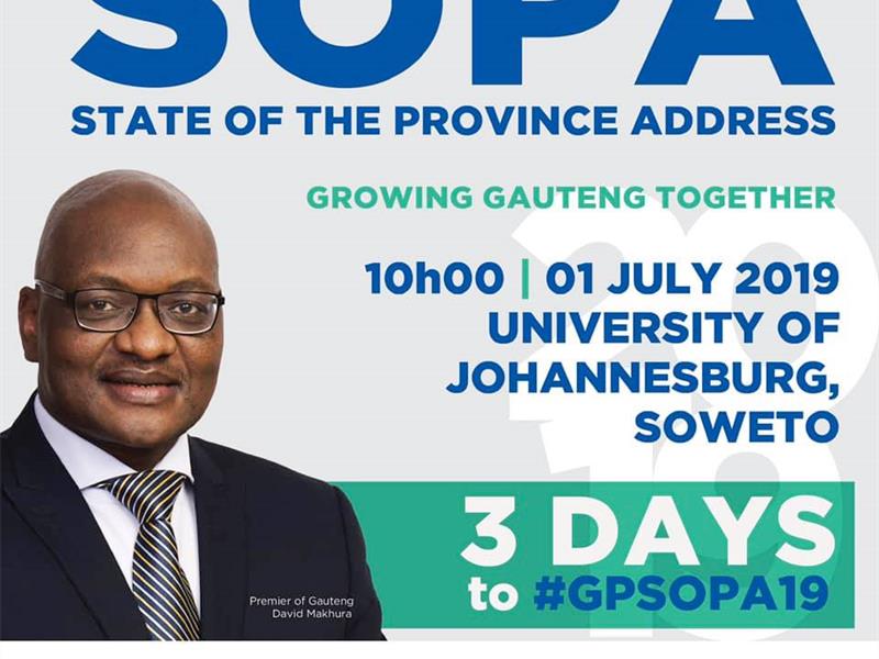 Gauteng Premier, David Makhura, will deliver his first State of the Province Address (SOPA) following the 6th general elections today, 1 July.