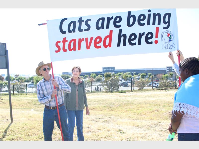 Members of the National Cat Action Task Force (Ncat) and Ban Animal Trading, as well as general cat lovers demonstrated outside the property on Saturday, 13 July, in a bid to alert motorists about the situation surrounding the cats.