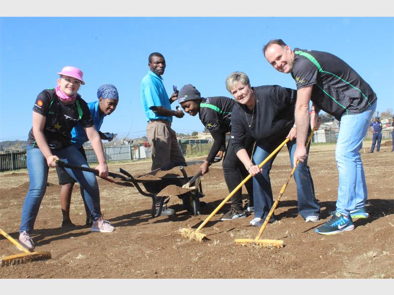 The employees of this Honeydew-based company rolled up their sleeves and donated compost to renew the grass on a soccer field at the Emthonjeni Community Centre.