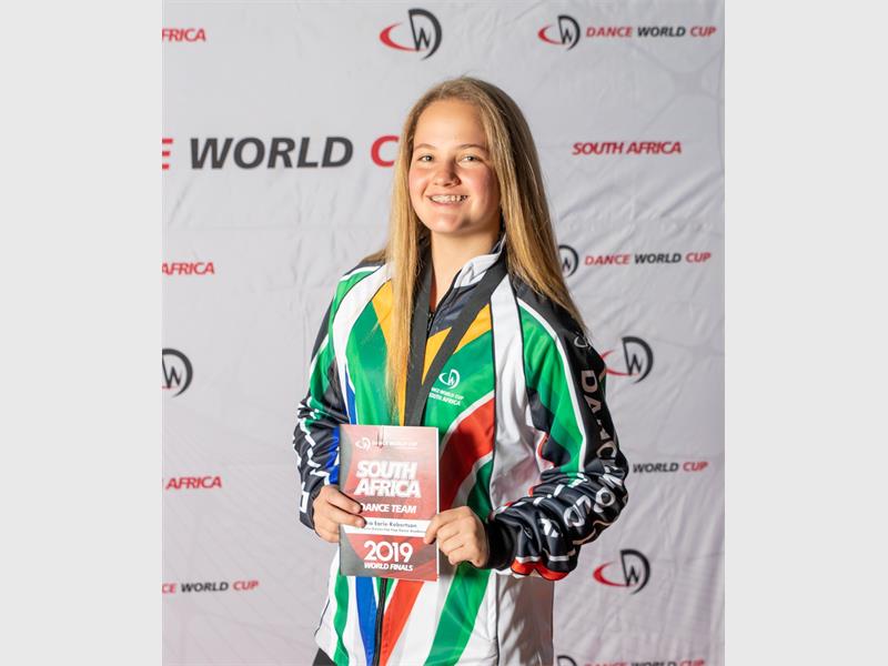 Mia Early-Robertson represented South Africa at the Dance World Cup in Portugal recently.