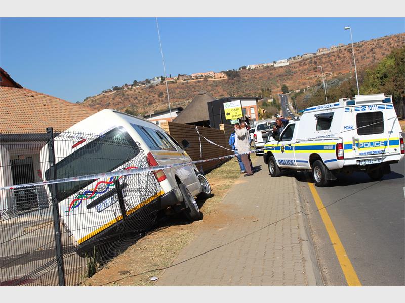 The area surrounding the Ruimsig Boulevard Shopping Centre has been cordoned off as a crime scene following a dramatic shooting during which a taxi was shot at multiple times before crashing into a perimeter fence on Doreen Road, this morning, Friday, 26 July.