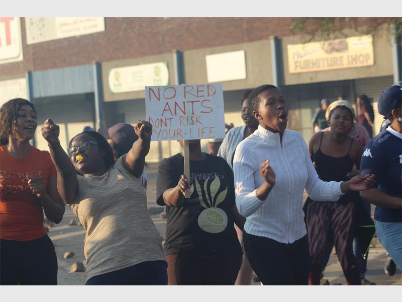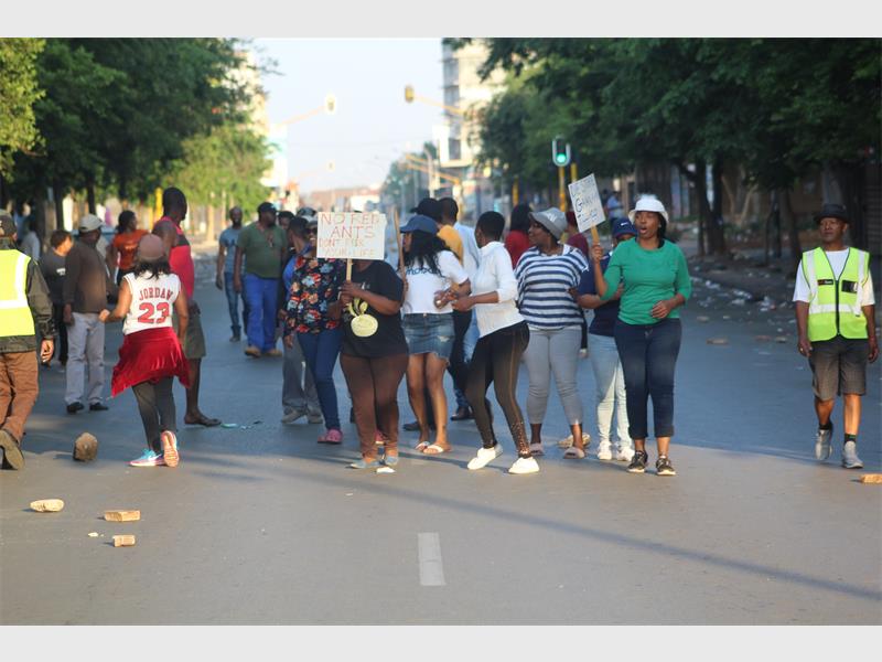 A few police vehicles and JMPD officers were visible on the scene and a few more arrived later as the protest intensified up Albertina Sisulu Road.