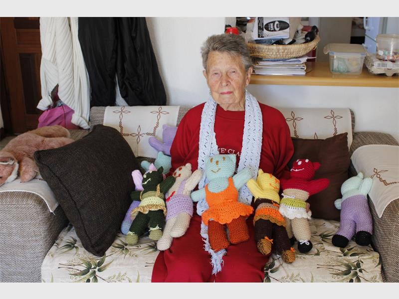 Elmarie has just turned 85 but still lives an active lifestyle and uses her quick knitting ability for a good cause.