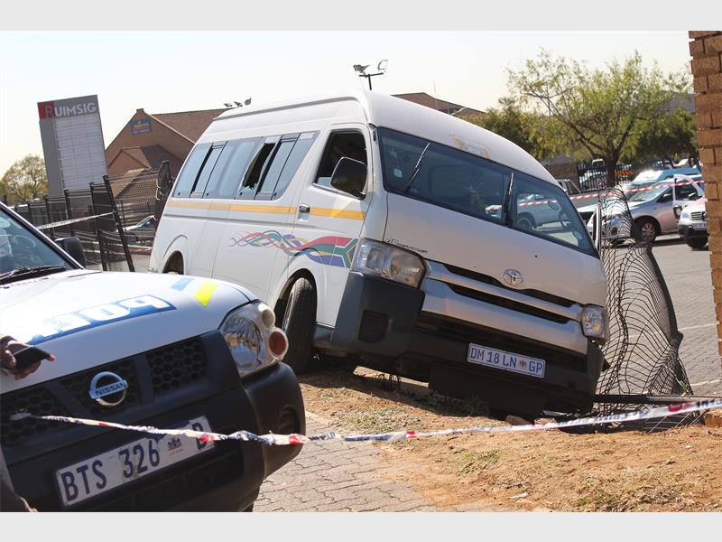 The taxi, which the victim was driving at the time of the incident, was riddled with bullet holes. The wounded driver consequently crashed the taxi into a perimeter fence on Doreen Road in Ruimsig.
