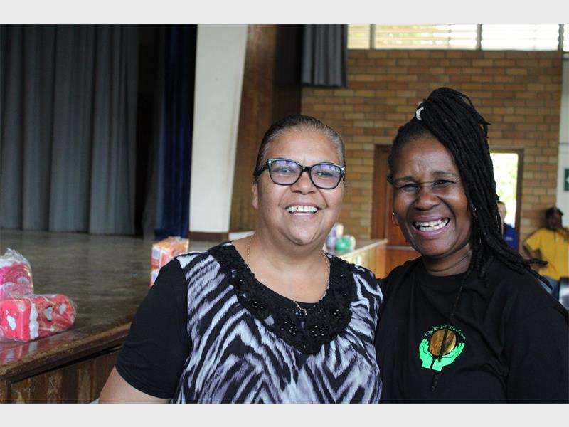 Three-hundred-and-thirty female learners, from Grade 4 to Grade 7, gathered in the school hall for an educational and entertaining day. The girls were given sanitary towel packages consisting of two packets of sanitary towels each. The teachers, learners, and Ogle Foundation staff sang, danced, and laughed throughout the event.