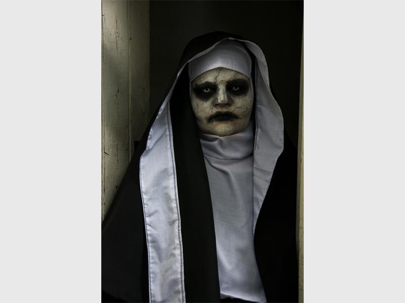 And this year she decided on the top character from a few of her favorite horror movies – Amityville, Poltergeist, The Conjuring, Exorcist and The Haunted. “I love The Conjuring and the Nun movies, and when I first laid eyes on the Nun, I was really afraid, so I decided to try and see if I could come up with my own scary Nun,” Geraldine explained.