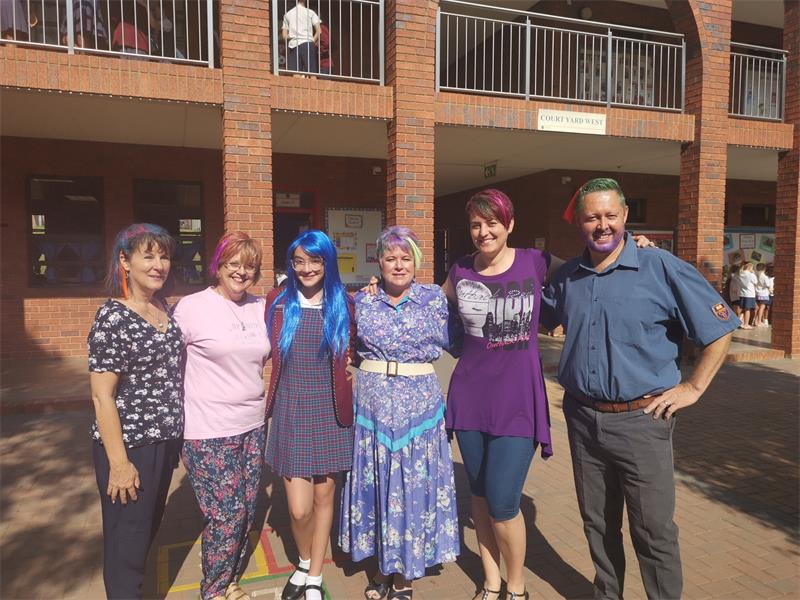 To celebrate the target, the leadership of the school spray-painted their hair for a day.