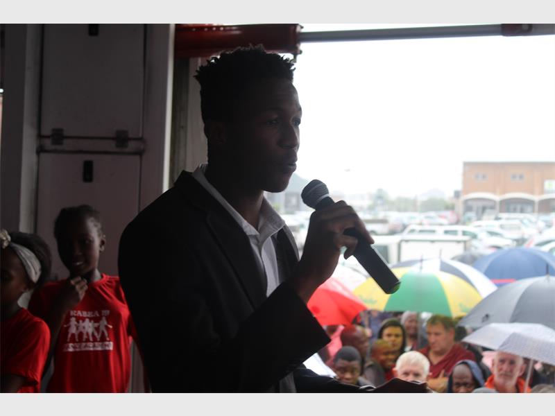 The early arrivals huddled themselves along the walkways of Princess Crossing while those who got there later needed umbrellas to avoid the driving rain. Musical and dance acts kept the spirits high as the shivering crowd waited for the main event. The amount of till slips from entrants who had purchased R500 or more worth of groceries, not including account or municipal payments, was so large a netted trampoline was needed.