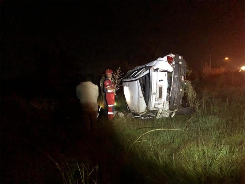 Early respondents to the scene – ER24 and City of Johannesburg Emergency Services among them – discovered the vehicle in a field several metres from the road. Three people were able to escape from it before paramedics arrived, but one person was trapped inside. Response teams used specialised tools to free the seriously injured person. All the injured were subsequently transported to hospital.