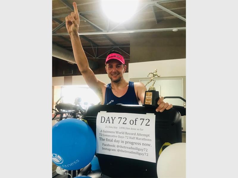 Verlede jaar het hy geskiedenis gemaak toe hy ‘n halfmaraton van 21,1km binne 72 agtereenvolgende dae by verskeie Planet Fitness Gimnasiums op die trapmeul voltooi het, en as die nuwe Guinness Wêreldrekordhouer aangewys is.