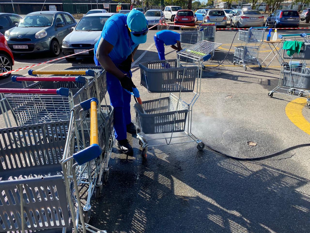 Trolleys and handbaskets are cleaned daily at Pick n Pay Witpoortjie as a standard practice.