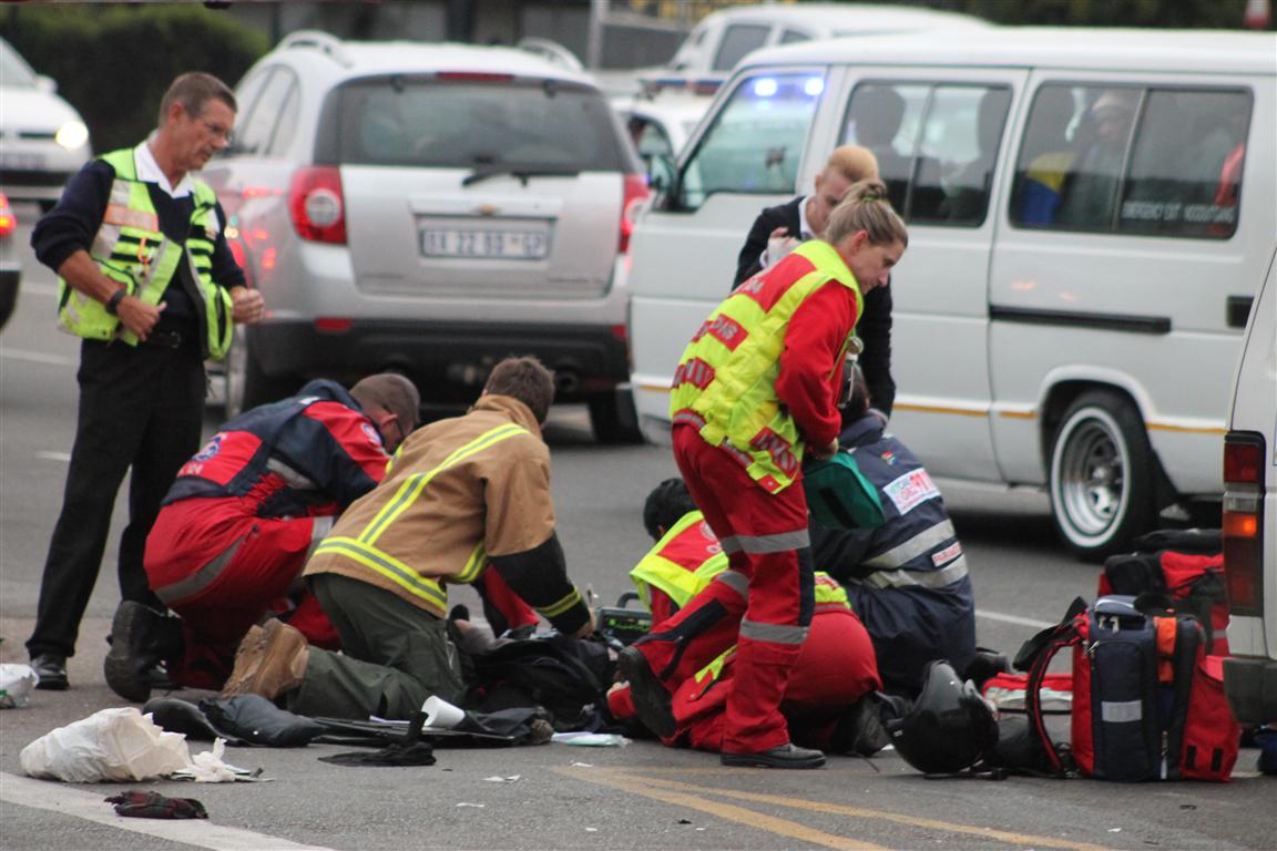 Collision between delivery bike and motor vehicle on CR Swart