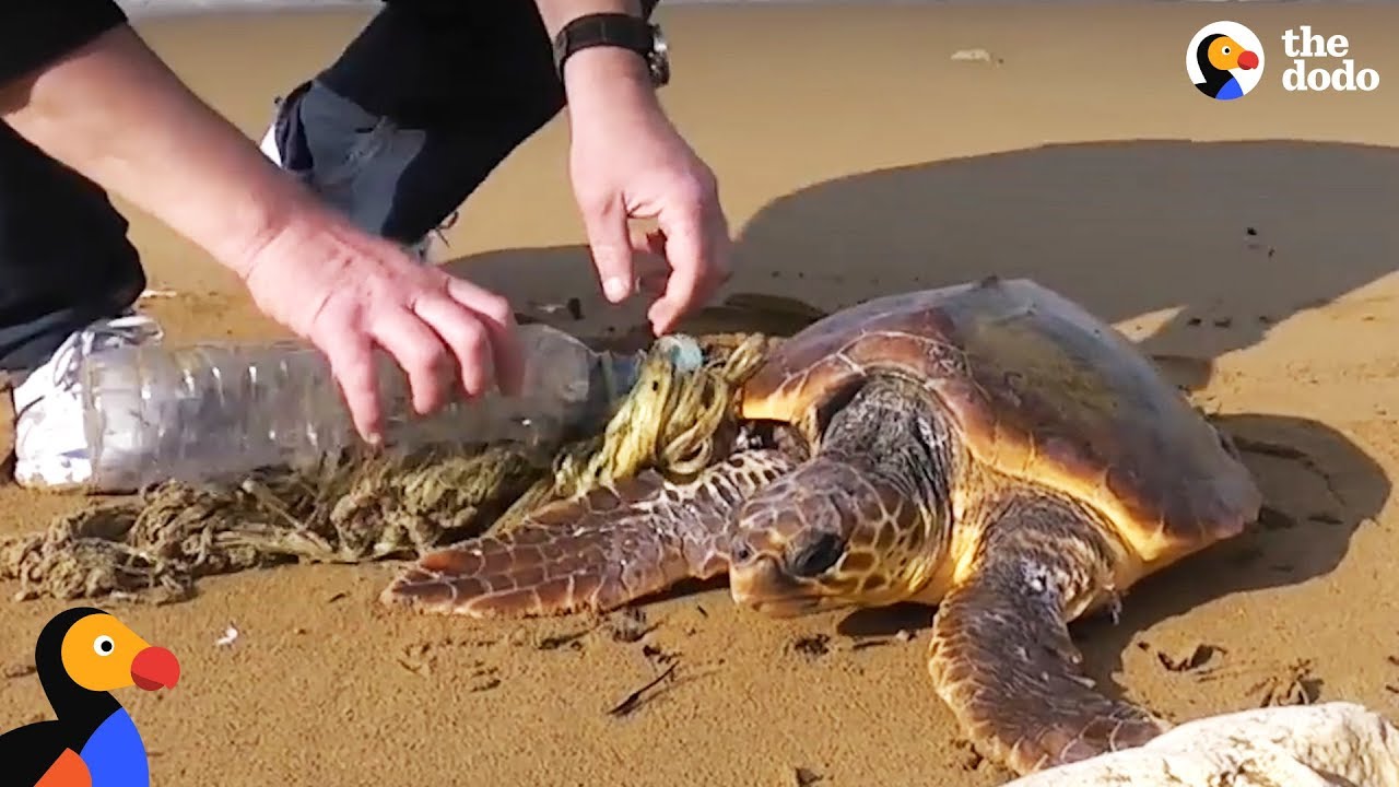 Guys Use Lighter to Rescue Sea Turtle Tangled In Trash