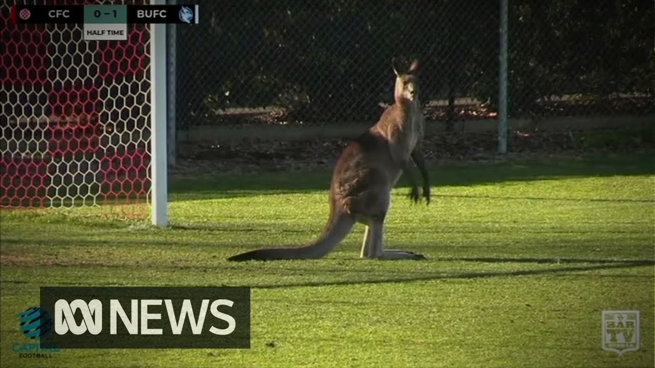 Kangaroo invades field at Australian soccer match