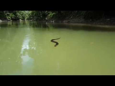 A very curious cottonmouth snake