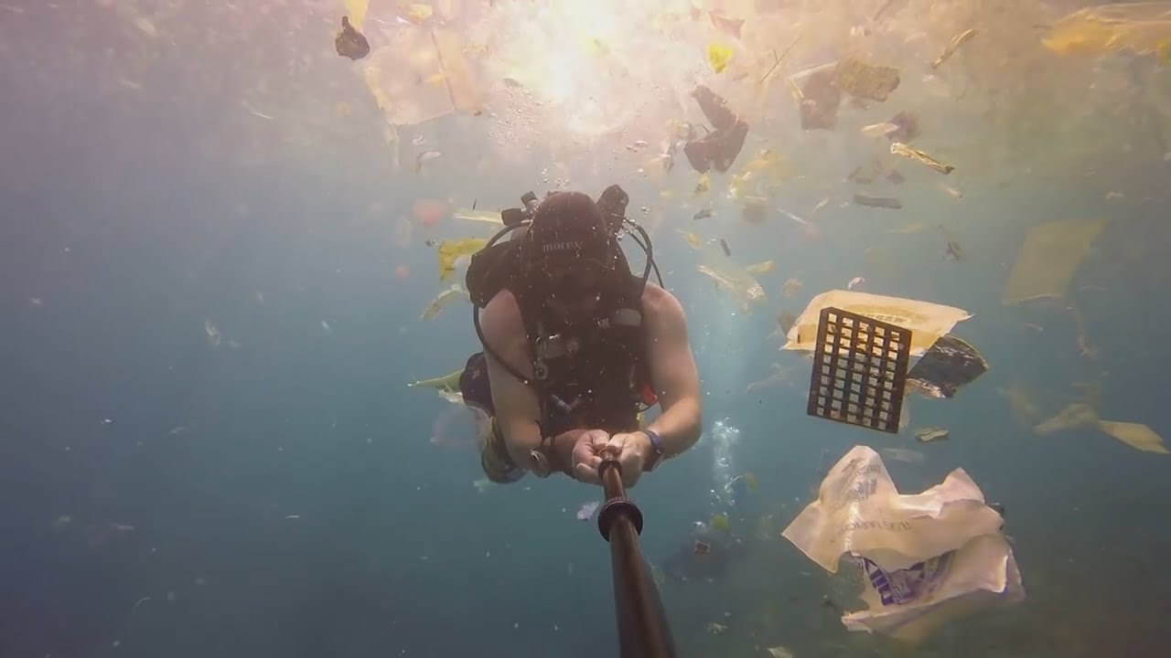 British diver films deluge of plastic waste off Bali