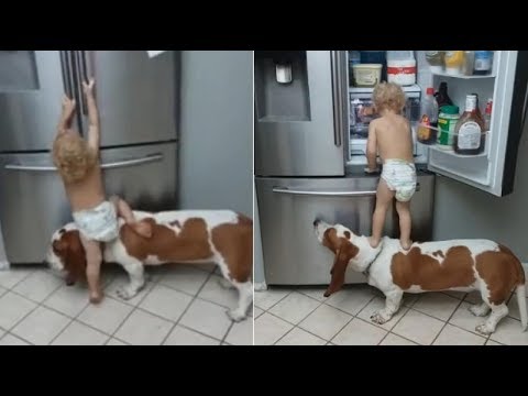 Toddler and his dog team up to raid fridge