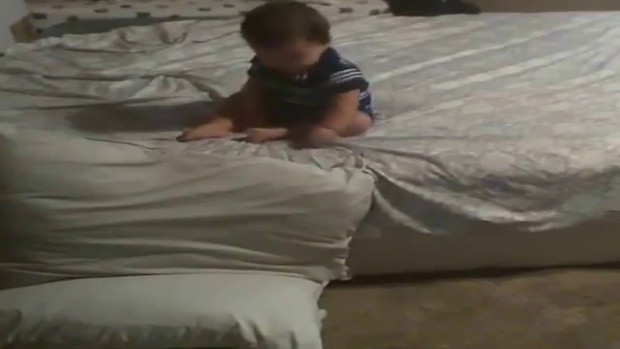 Genius baby thinks of the perfect strategy to get off the bed